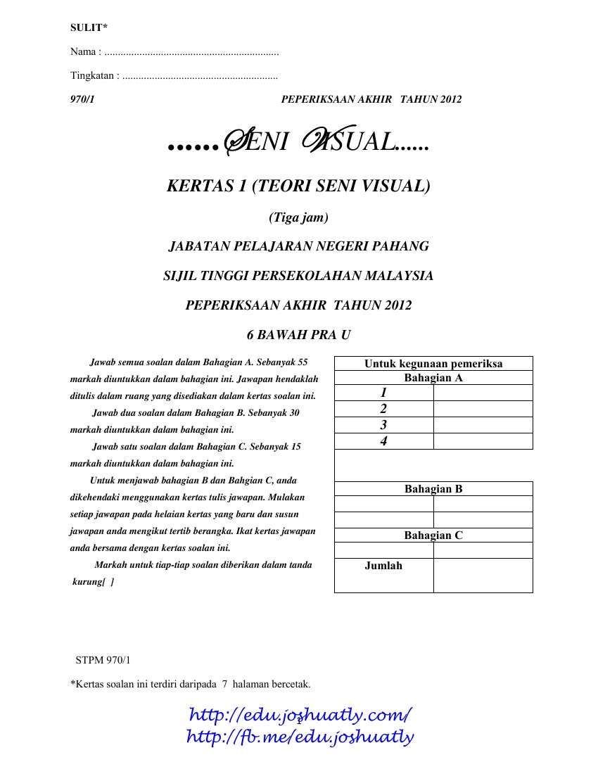 970 Sukatan Pelajaran Seni Visual Stpm Baharu