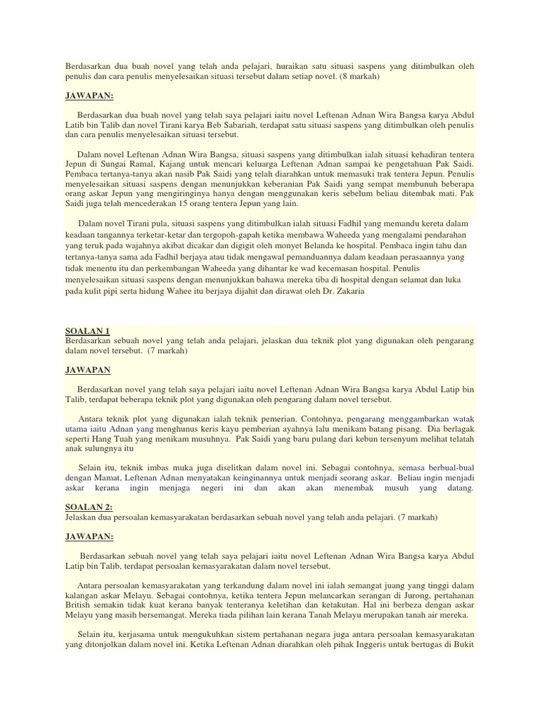 Bahasa Melayu Smk Taman Megah Ria Teknik Penulisan Jawapan Novel Spm 2018