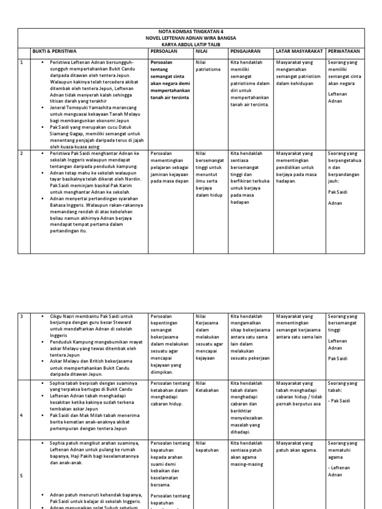 Nota Komsas T4 Leftenan Adnan Wira Bangsa