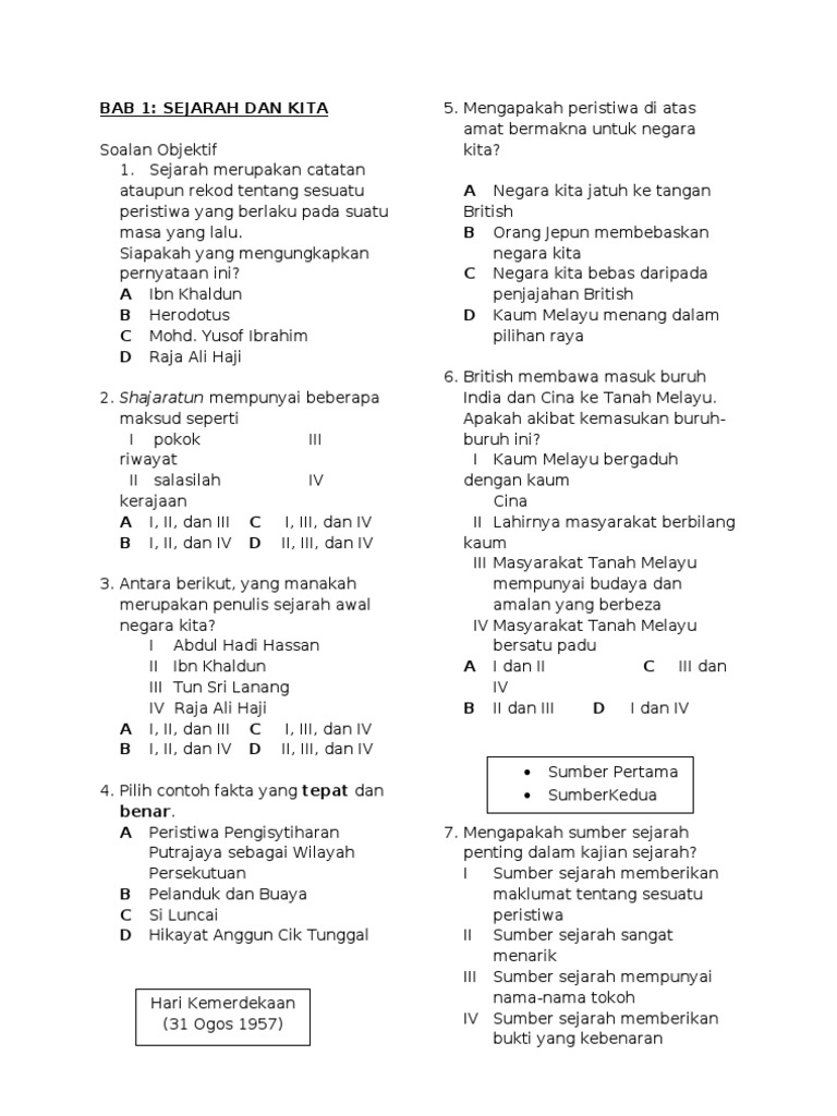 Sejarah Soalan Skema Jawapan Kertas 3 Tingkatan 5