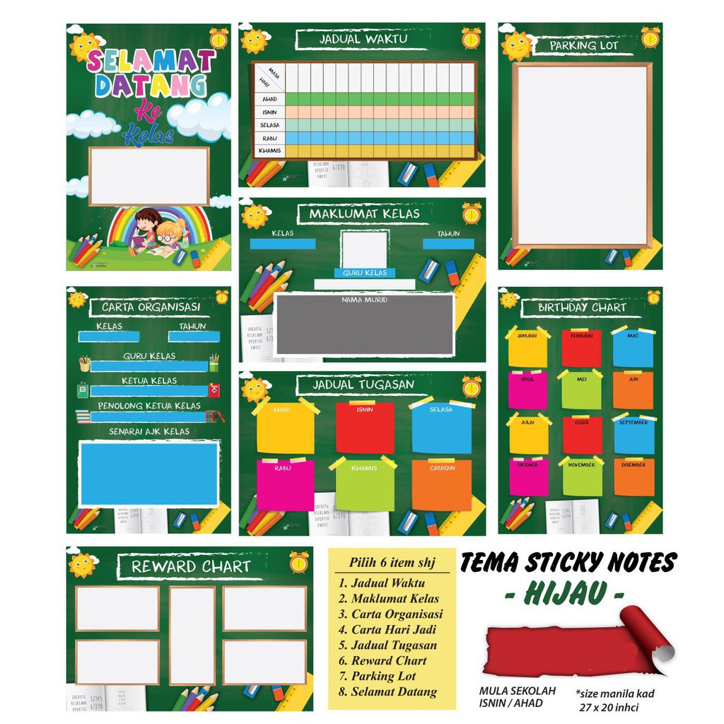Set Keceriaan Kelas Sekolah Tema Sticky Notes Hijau Shopee Malaysia