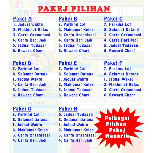 Set Keceriaan Kelas Pak 21 Banner 8pcs Jadual Carta Kelas Design Kualiti Terbaik Shopee Malaysia