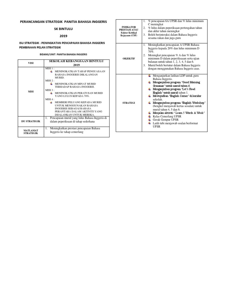 Doc Perancangan Strategik Panitia Bahasa Inggeris Wong Meiling Academia Edu