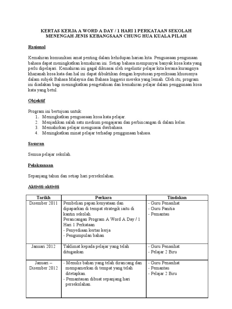 Kertas Kerja A Word A Day