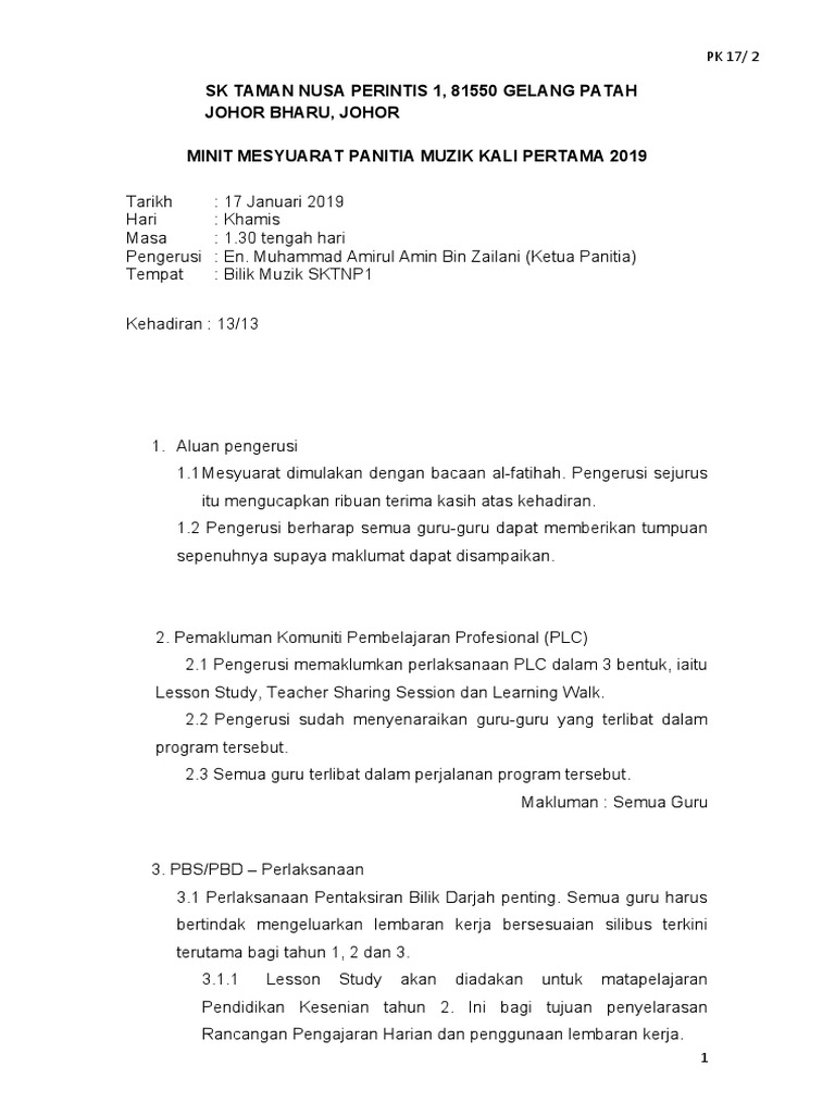 Minit Mesyuarat Psv Bil 4 2019 Pages 1 3 Text Version Anyflip