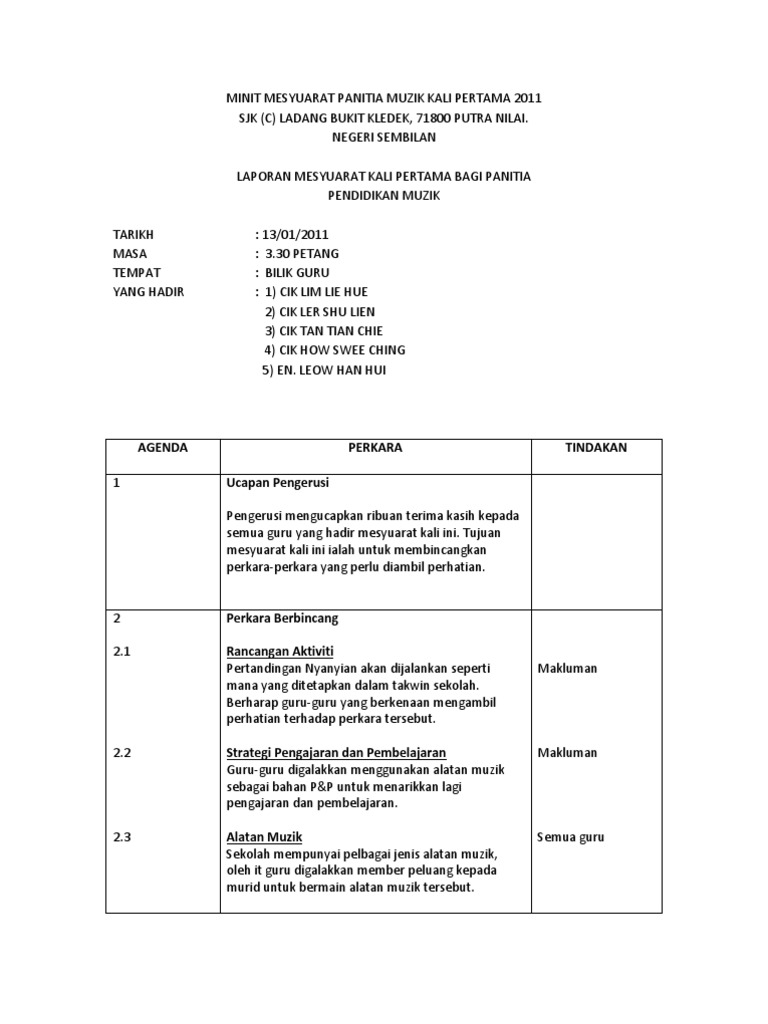 Minit Mesyuarat Panitia Muzik Kali Pertama 2011