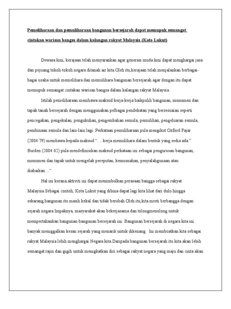 Contoh Karangan Usaha Usaha Memelihara Dan Memullihara Bangunan Bersejarah